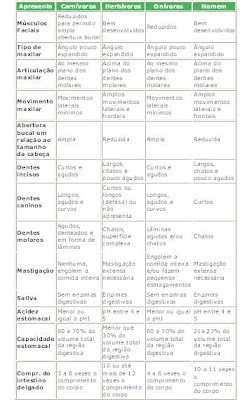 Abaixo estão algumas comparações feitas entre os animais carnívoros, omnívoros, herbívoros e o homem, as quais servem para sanar a dúvida criada pela nossa cultura.